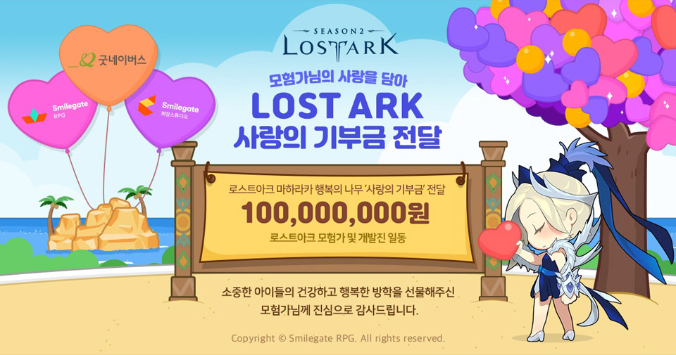 기부자명은 [로스트아크 모험가 및 개발자 일동]으로 저희의 이름이 함께 나가게 됩니다.
